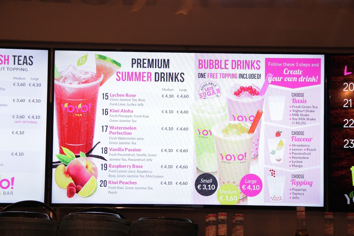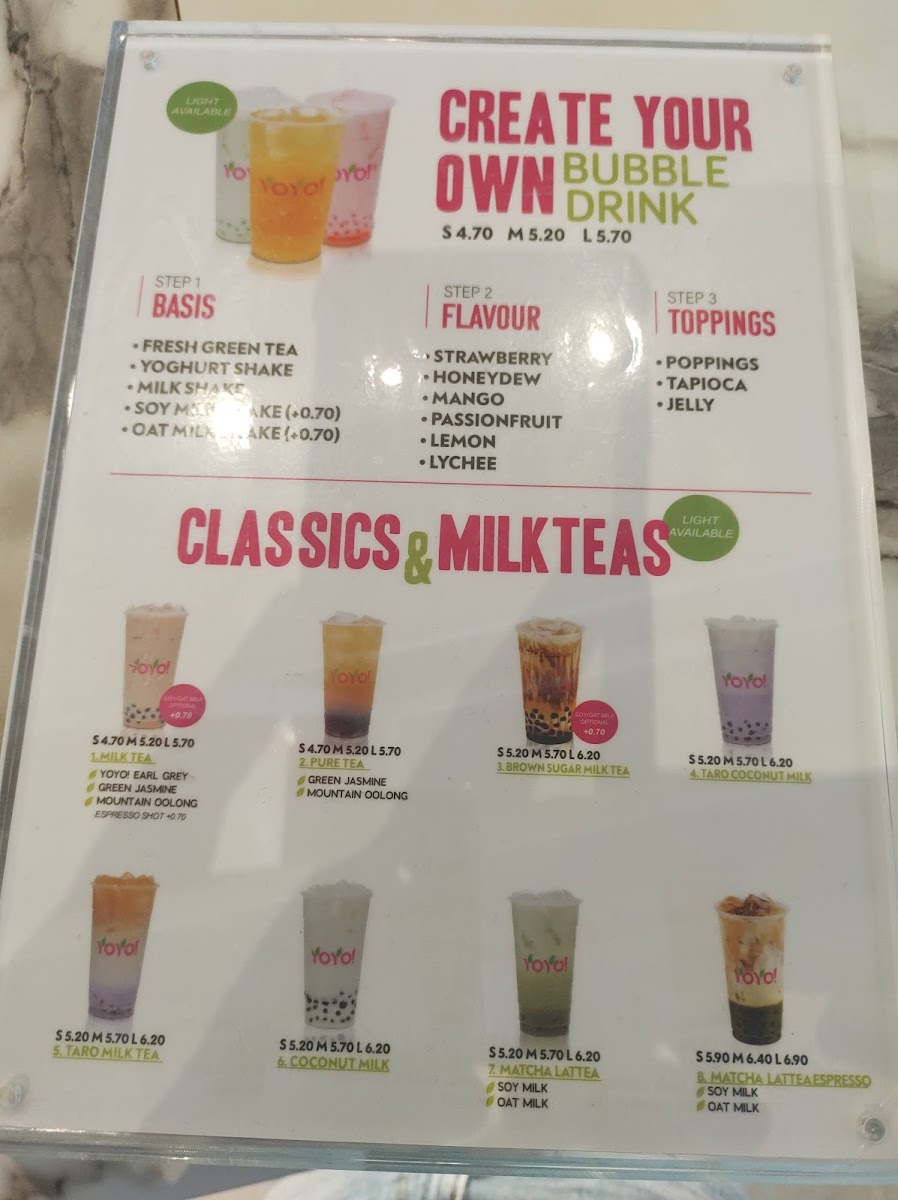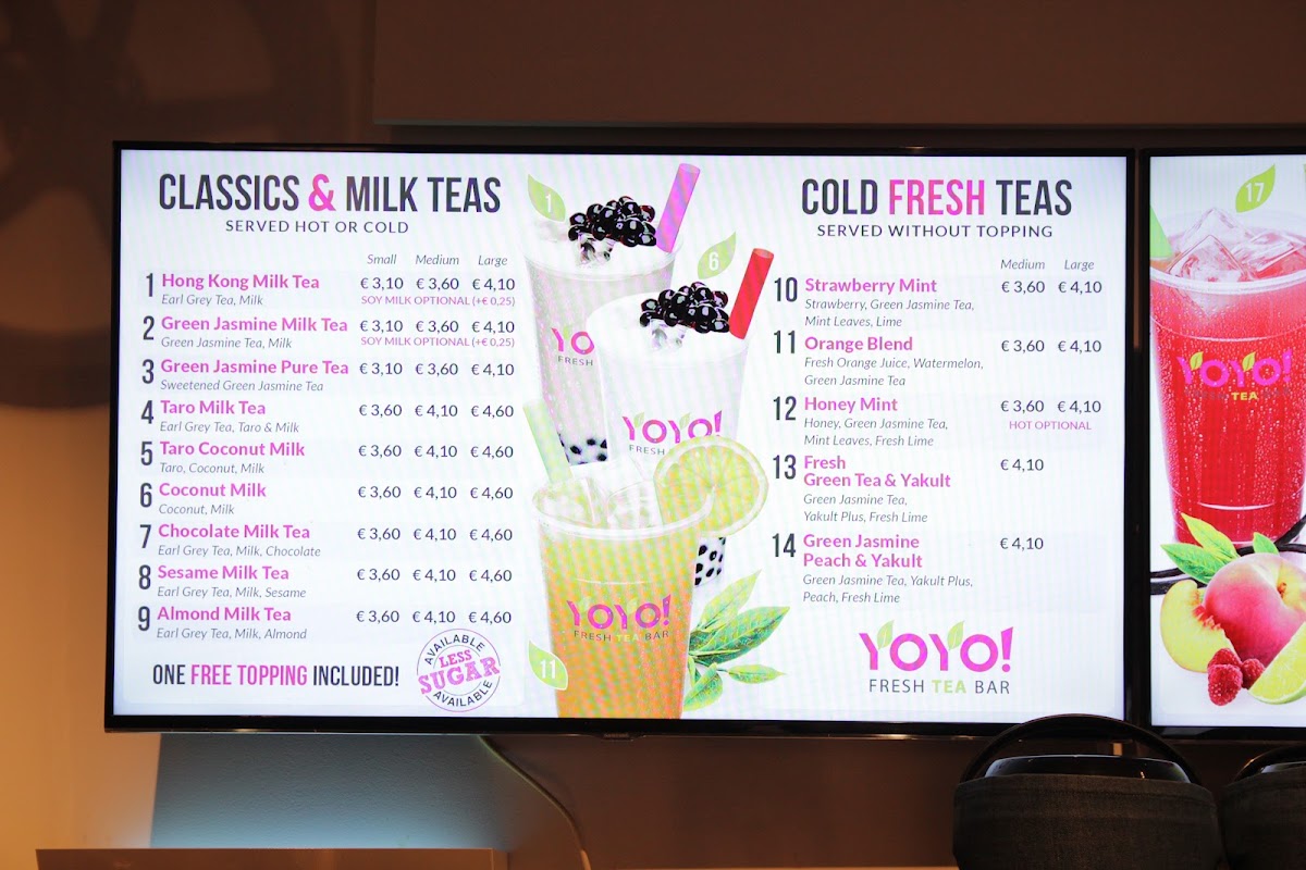 Yoyo! Fresh Tea Bar at Kruisplein 28 offers a menu that strikes a perfect balance between playful creativity and classic bubble tea favorites. The Brown Milk Sugar Bubble Tea stands out with its rich caramelized notes, pairing seamlessly with chewy tapioca pearls for a comforting yet indulgent experience. For those seeking something tropical, the Taro Coconut Milk Tea delivers a creamy, subtly sweet flavor that evokes a refreshing island vibe, while the Taro Milk Tea remains a crowd-pleaser, its velvety texture and gentle sweetness highlighting the earthy notes of taro. Beyond these signature drinks, the menu maintains a thoughtful mix of flavors and textures, catering to both adventurous palates and traditional bubble tea lovers. Each item is carefully crafted, demonstrating an attention to detail that elevates the overall experience, making it a destination for anyone looking to enjoy high-quality, flavorful teas in a casual, modern setting.
